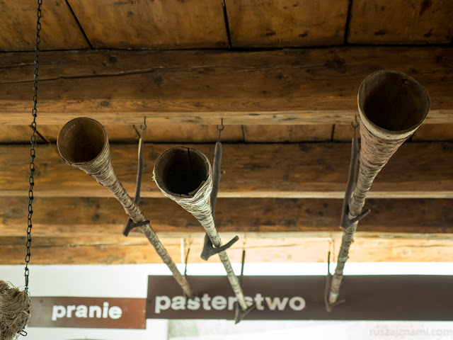 Zwiedzanie muzeum rozpoczęliśmy od obejrzenia filmu przedstawiającego sylwetki twórców ludowych, po czym ruszyliśmy odkrywać kulturę materialną górali śląskich. Wystawa stała mieści się w budynku dawnej karczmy z 1794 roku i podzielona jest na trzy sale. Pierwsza sala poświęcona jest gospodarce sałasznico-pasterskiej, rzemiosłu i rolnictwu. Tu dowiedzieć się można jak wyglądało życie codzienne górali, w jaki sposób prowadzono wypas owiec, jak wytwarzano sery, śmietanę i masło, zobaczyć potrzebne do tego akcesoria i naczynia, jak również wykorzystywane do ich produkcji narzędzia, poznać metody wytwarzania tkanin i sposoby prania, obejrzeć zabytkowy sprzęt narciarski...